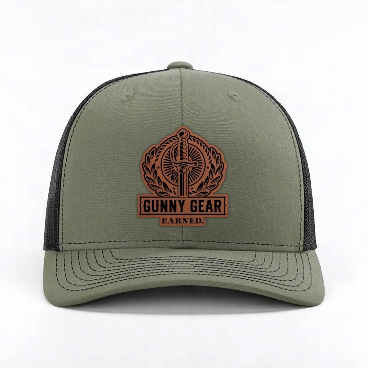 Gunny Gear Richard 112 Trucker Hat – Sage/Tan Stay bold and battle-ready with the iconic Gunny Gear Richard 112 Trucker Hat. Built on the legendary Richardson 112 foundation, this hat features our exclusive Softsnap Adjustable Backstrap, offering a softer, more flexible fit for all-day comfort. With its classic trucker style, breathable mesh back, and structured front panel, this hat blends durability with modern comfort—perfect for those who lead with strength and style. Represent the Gunny mindset wherever you go.