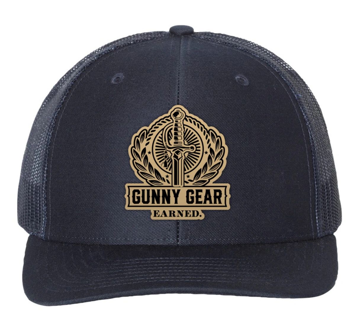 Gunny Gear Richard 112 Trucker Hat – Navy Blue/Tan Patch Stay bold and battle-ready with the iconic Gunny Gear Richard 112 Trucker Hat. Built on the legendary Richardson 112 foundation, this hat features our exclusive Softsnap Adjustable Backstrap, offering a softer, more flexible fit for all-day comfort. With its classic trucker style, breathable mesh back, and structured front panel, this hat blends durability with modern comfort—perfect for those who lead with strength and style. Represent the Gunny mindset wherever you go.
